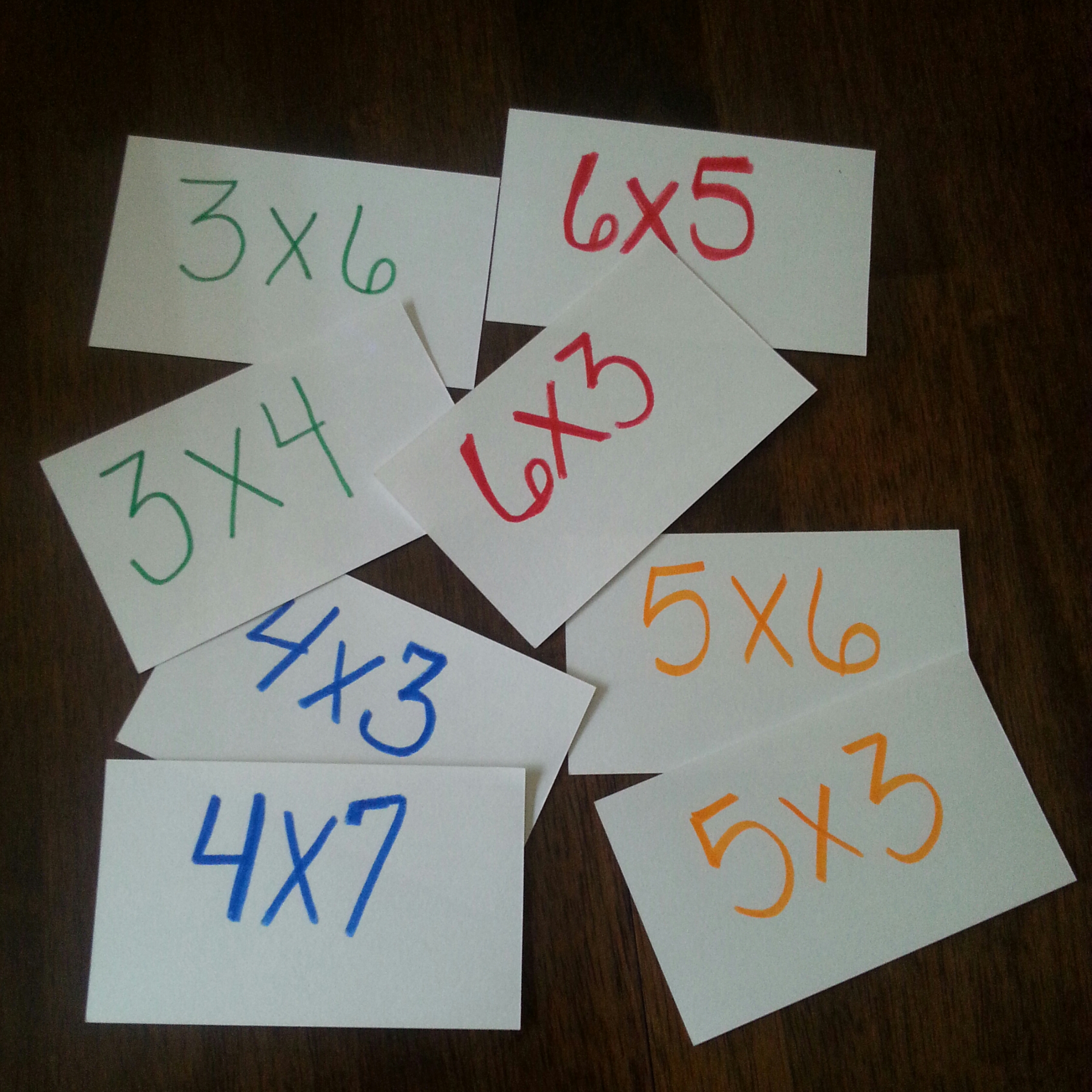 #4: Make your own color coded flash cards. Start small. Use index cards and a colorful marker to make flash cards just for the two’s. Practice 3-4 cards out loud at a time, over and over! Then practice 3 more, over and over. After a few days mix them all up and see if you can get them all correct. If not, practice the hard ones again.